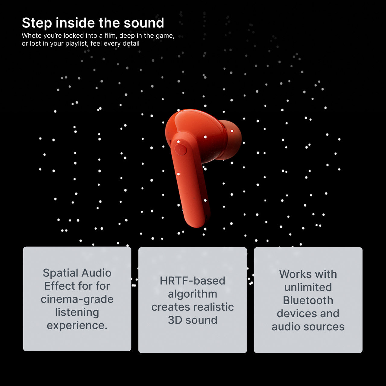 - 360 degree Cinematic Sound: CMF Buds 2 brings Spatial Audio Effect powered by an HRTF-based algorithm, creating a cinema-grade listening experience.